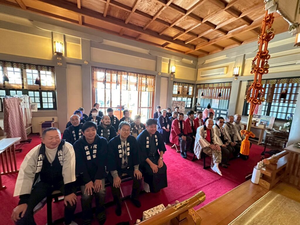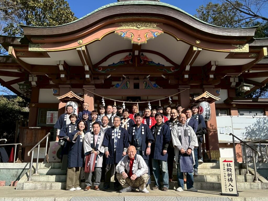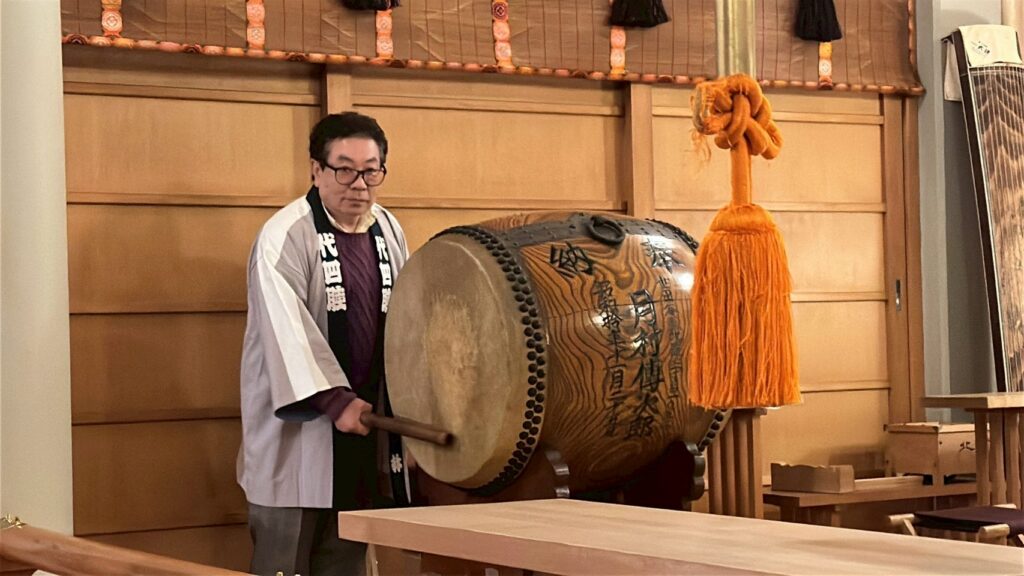 2026年の新年の行事をふたつ行いました。元旦には、北澤八幡神社の神殿にて月村直樹会長と、林美津夫副会長が力強く新年を告げる太鼓を打ました。その後場所を変えてお雑煮でお祝いをしました。