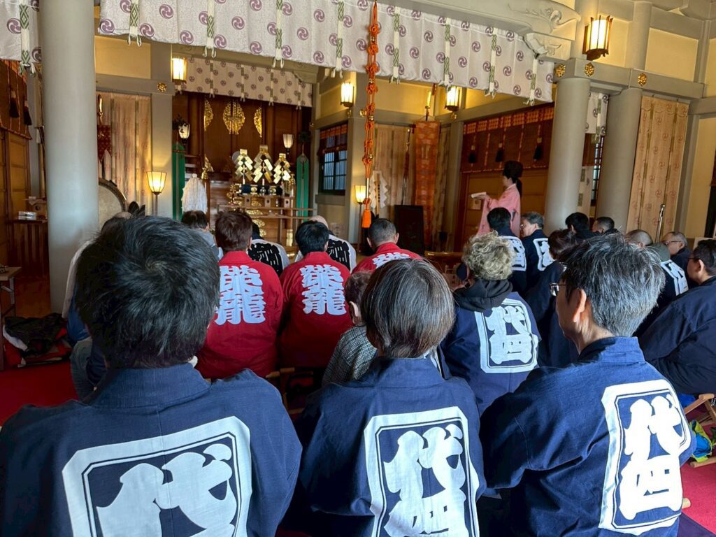 また、1月18日には、同神社にて代四睦会と榮龍會がそろってお正月のお祓いをうけました。午年ということで、馬は後ろを振り向かずに前に走るので、走り出す前に小石が転がっていないか確かめてからと進む様にとお言葉をいただきました。心して健康に留意して一年を過ごして行きたいと思います。お祓いの後には、地元の中華店にて新年会が催され、シャンパンで乾杯、豪華景品のじゃんけん大会もありとても楽しいひとときを過ごしました。
